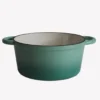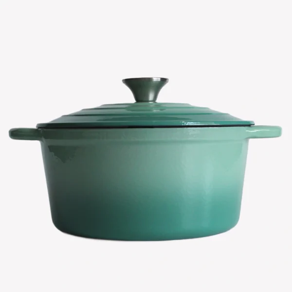 Gjutjärnsgryta Rund 24 cm grön gjord i emaljerat gjutjärn och har ett skyddande lager som gör att du inte behöver bränna in den. Den är funkar med alla typer av spisar, inklusive induktions- och gasspisar. Grytan klarar upp till 240 °C. Så tar du hand om din emaljerade gjutjärnsgryta rund 24 cm grön: